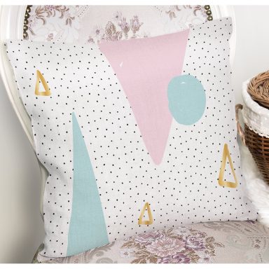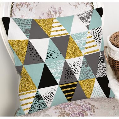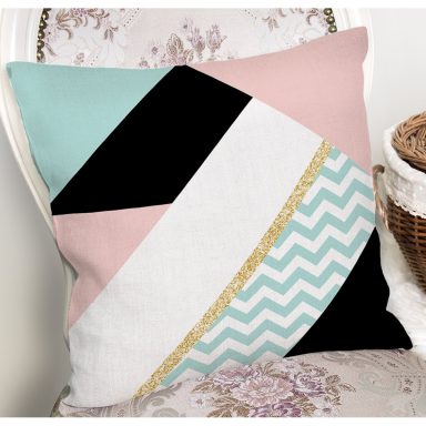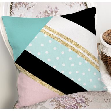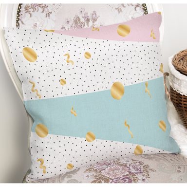 Pastel Zemin Üzerinde Gold Detaylı Geometrik Desenli Yastık Kırlent Kılıfı