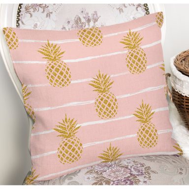 Pastel Zemin Üzerinde Gold Renkli Anans Desenli Modern Yastık Kırlent Kılıfı