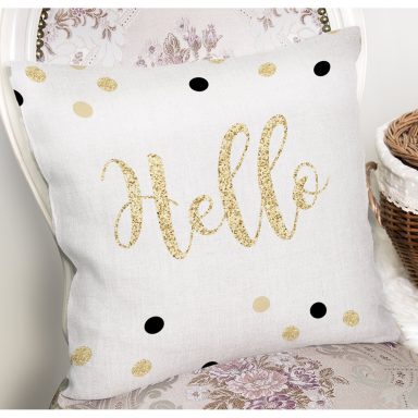 Beyaz Zemin Üzerinde Gold Detaylı Hello Yazılı Modern Yastık Kırlent Kılıfı