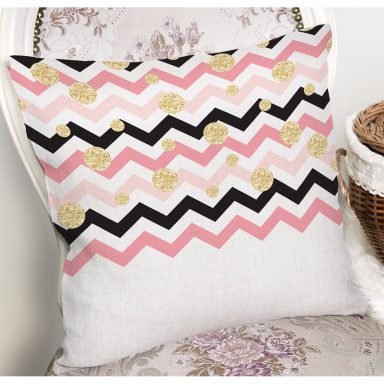 Beyaz Zemin Üzerinde Gold Detaylı Siyah Zigzag Desenli Yastık Kırlent Kılıfı