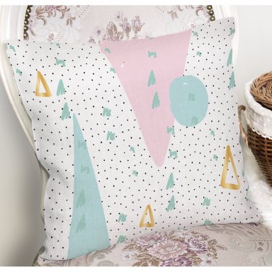 Beyaz Zemin Üzerinde Renkli Geometrik Desenli Dijital Baskılı Modern Yastık Kılıfı