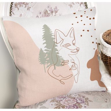 Pastel Zeminli Onedraw Çizimli Doğa Temalı Dijital Baskılı Modern Kırlent Kılıfı