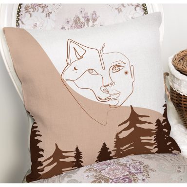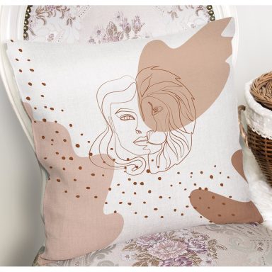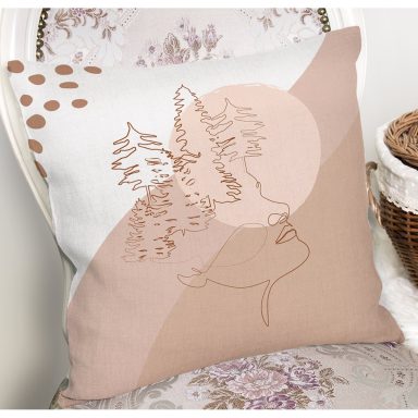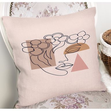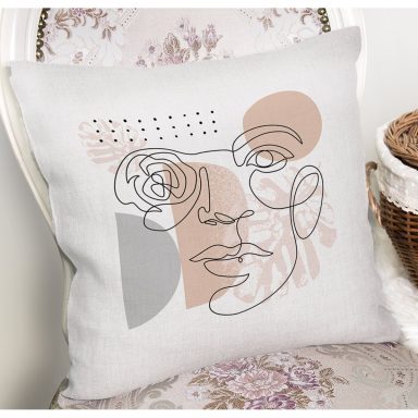 Pastel Zeminli Onedraw Çizimli Bayan Silüeti Dijital Baskılı Modern Kırlent Kılıfı