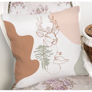 Renkli Zeminli Onedraw Çizimli Geyik Desenli Dijital Baskılı Modern Kırlent Kılıfı