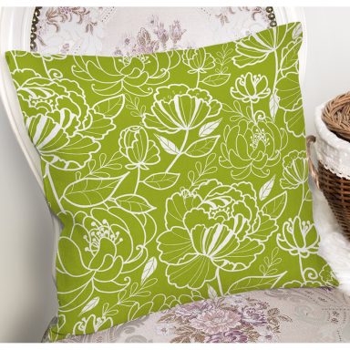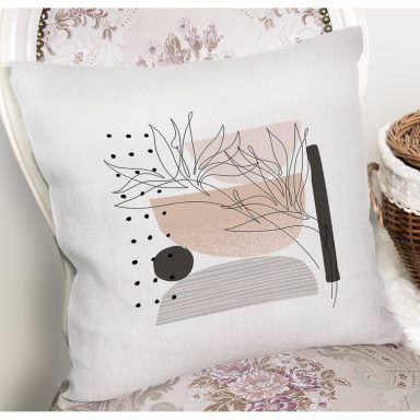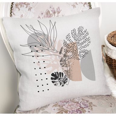 Pastel Zeminli Onedraw Çizimli Yaprak Desenli Dijital Baskılı Modern Yastık Kılıfı