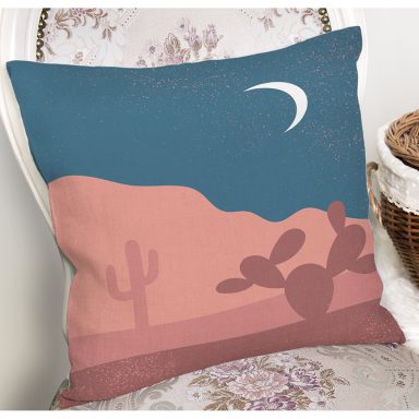Pastel Zemin Üzerinde Ay Çizimli Dijital Baskılı Modern Yastık Kırlent Kılıfı