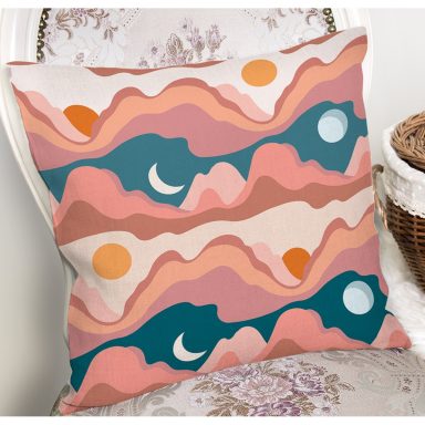 Pastel Renkli Zeminli Ay Güneş Temalı Dijital Baskılı Modern Yastık Kırlent Kılıfı