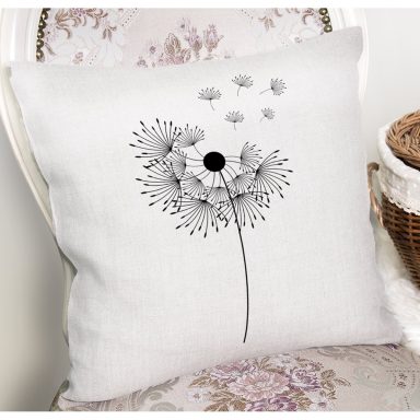 Beyaz Zeminli Onedraw Çizimli Yaprak Motifli Dijital Baskılı Modern Kırlent Kılıfı