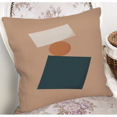 Renkli Zeminli Onedraw Çizimli Geometrik Dijital Baskılı Modern Kırlent Kılıfı