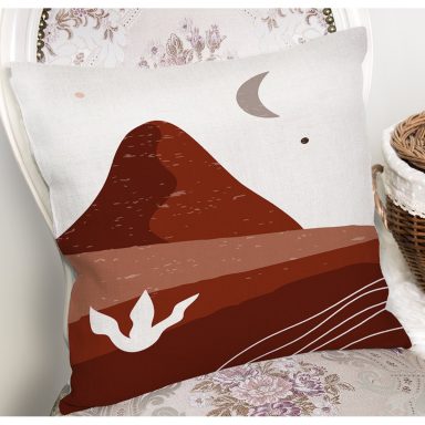 Beyaz Zeminli Onedraw Çizimli Manzara Temalı Dijital Baskılı Modern Kırlent Kılıfı
