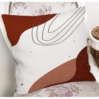 Renki Zemin Üzerinde Onedraw Çizimli Dijital Baskılı Modern Yastık Kırlent Kılıfı