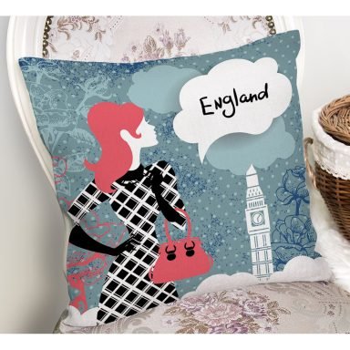London Modern Bayan Dijital Baskılı Dekoratif Yastık Kırlent Kılıfı – K79