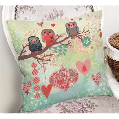 Baykuş Desenli Dijital Baskılı Dekoratif Yastık Kırlent Kılıfı – K121