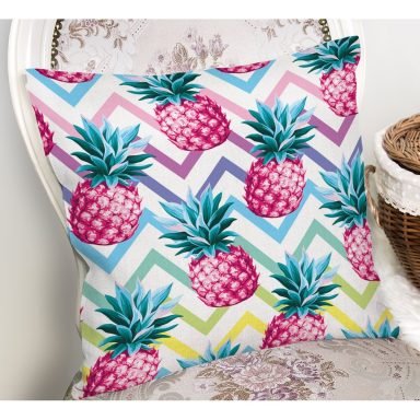 Renkli Zigzag Desenli Ananaslar Modern Tasarımlı Yastık Kırlent Kılıfı