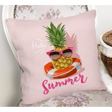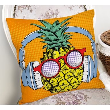 Turuncu Zeminde Summer Ananas Tasarımlı Yastık Kırlent Kılıfı