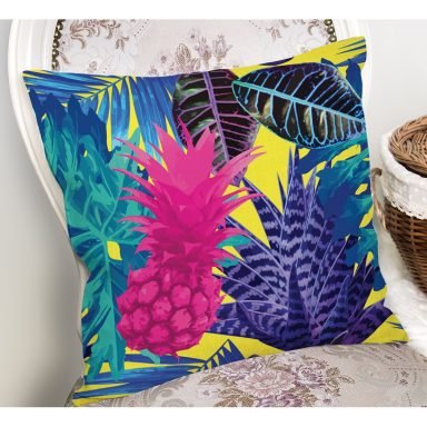 Mor Zeminde Tropikal Ananas Desenli Dijital Baskılı Kırlent Kılıfı