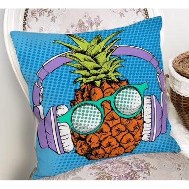Mavi Zeminde Ananas Desenli Dijital Baskılı Yastık Kırlent Kılıfı