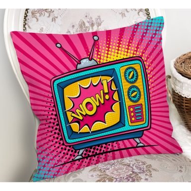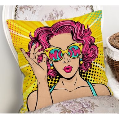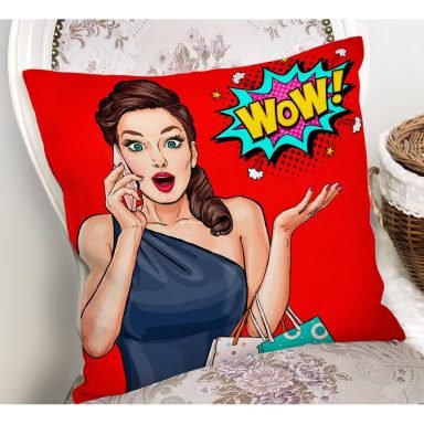 Pop Art Wow Desenli Özel Tasarım Dekoratif Yastık Kırlent Kılıfı