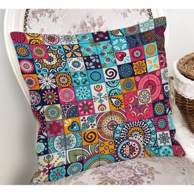 Renkli Şapka Tasarımlı Dijital Baskılı Dekoratif Yastık Kırlent Kılıfı