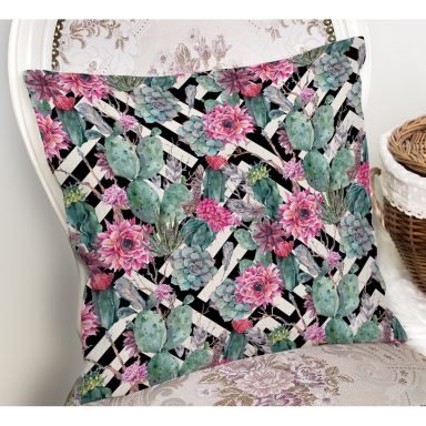 Geometrik Zeminde Çiçek ve Kaktüsler Özel Tasarım Yastık Kırlent Kılıfı