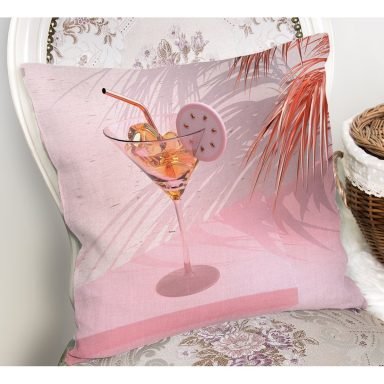 Palmiye ve Kadeh Resimli Dijital Baskılı Yastık Kırlent Kılıfı