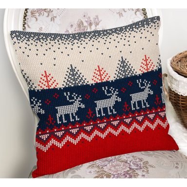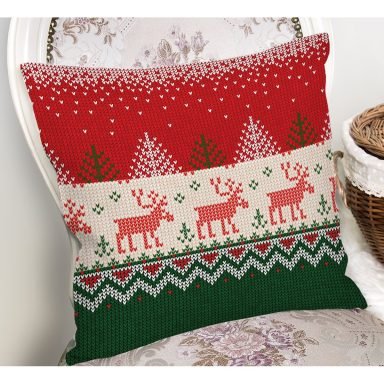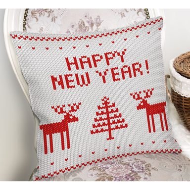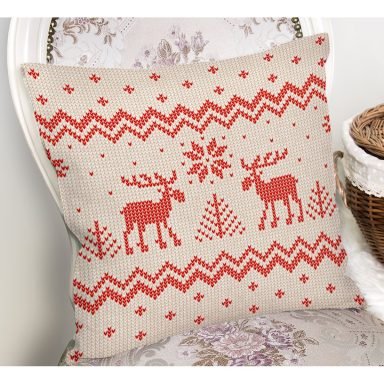 Kanaviçe Motifli Yılbaşı Temalı Dijital Baskılı Kırlent Kılıfı