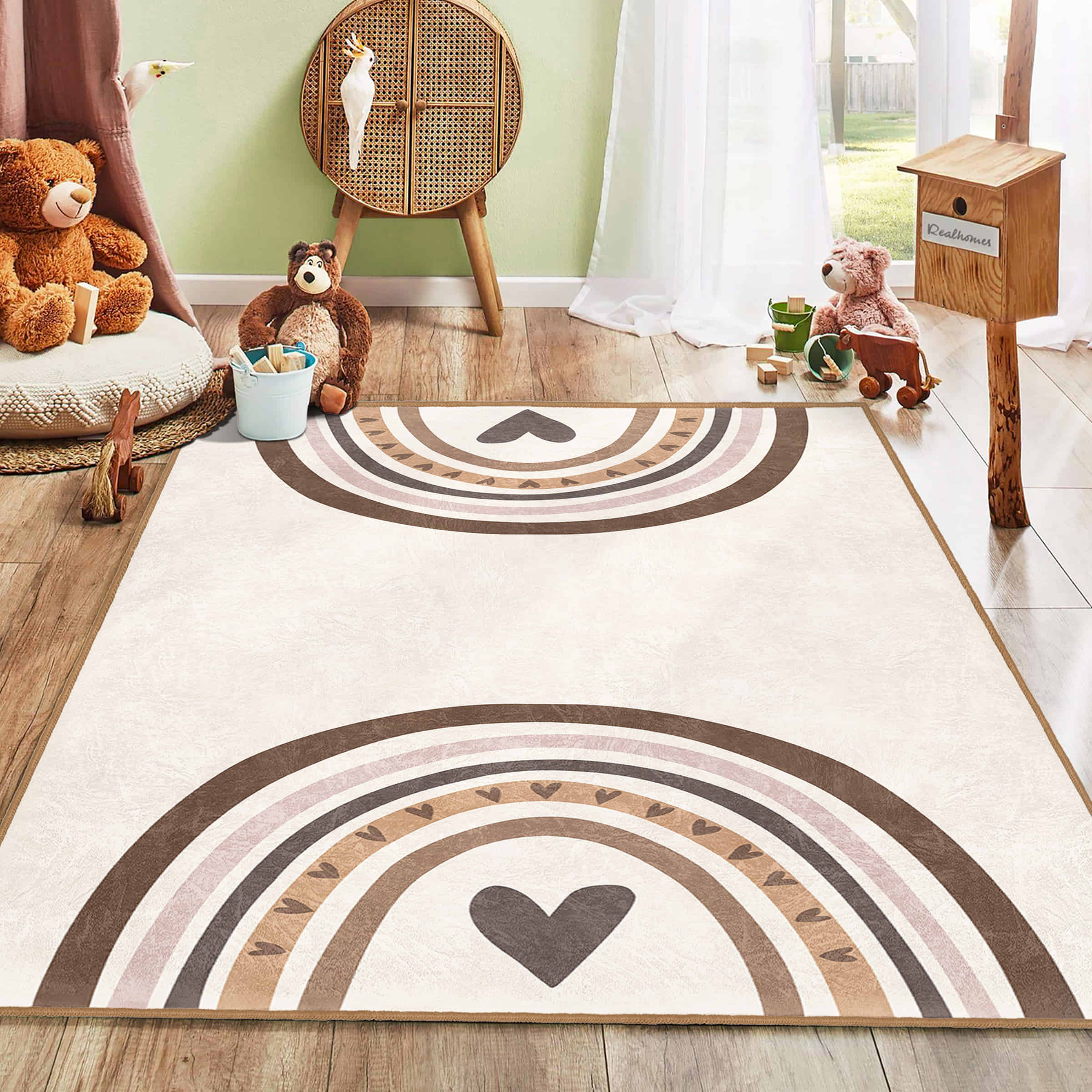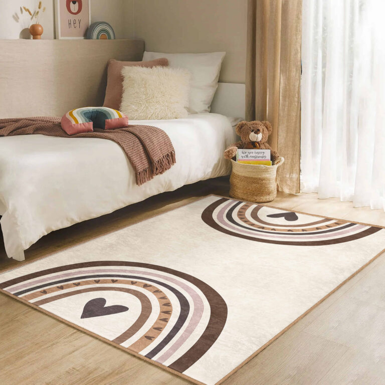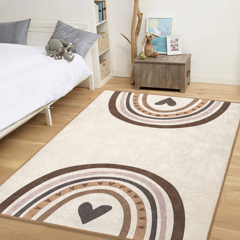 3D Dijital Baskılı Sevimli Yağmur Desenli Makinede Yıkanabilir Kaymaz Taban Çocuk Halısı
