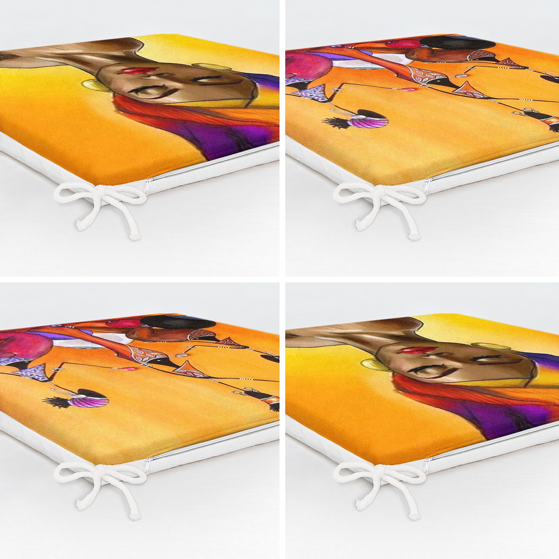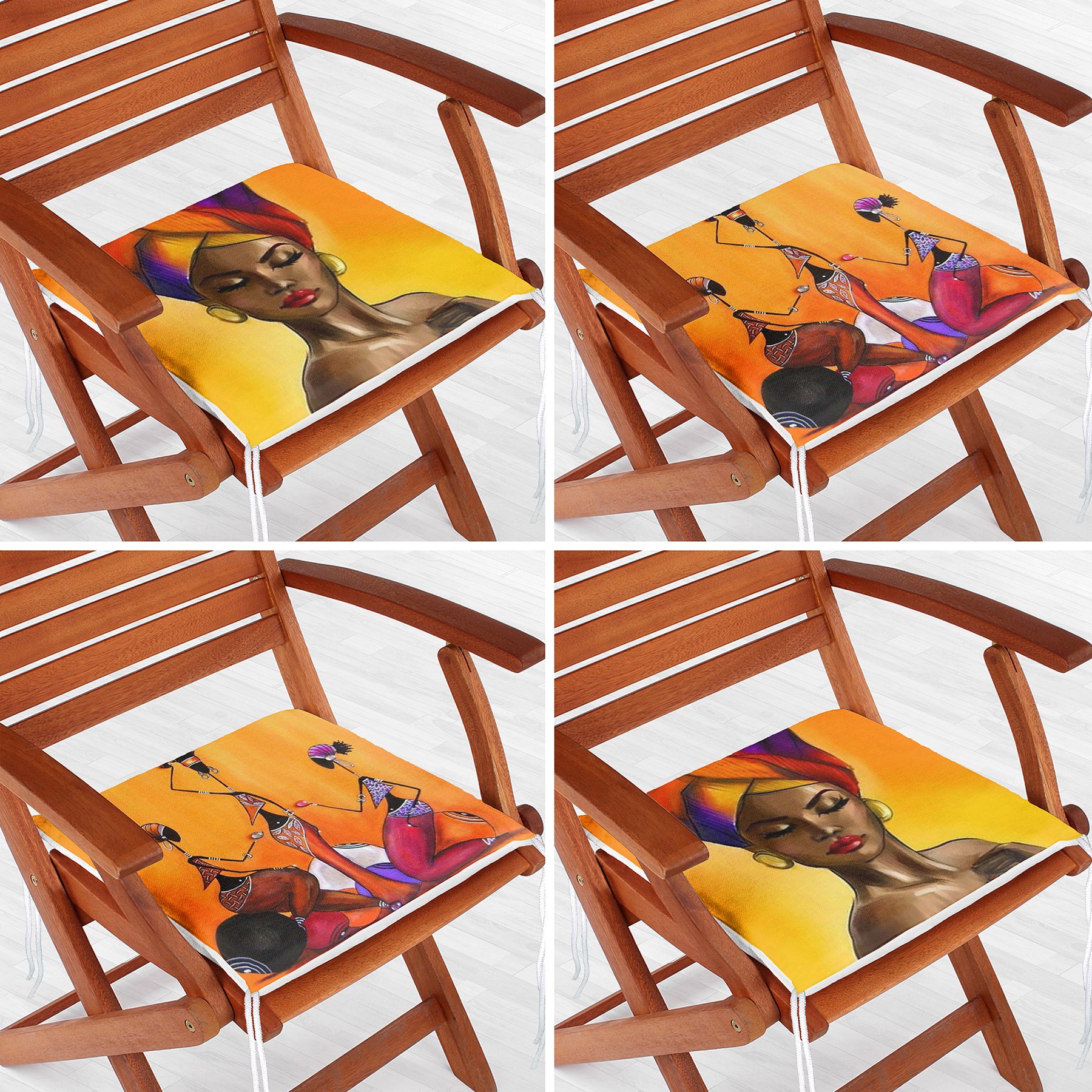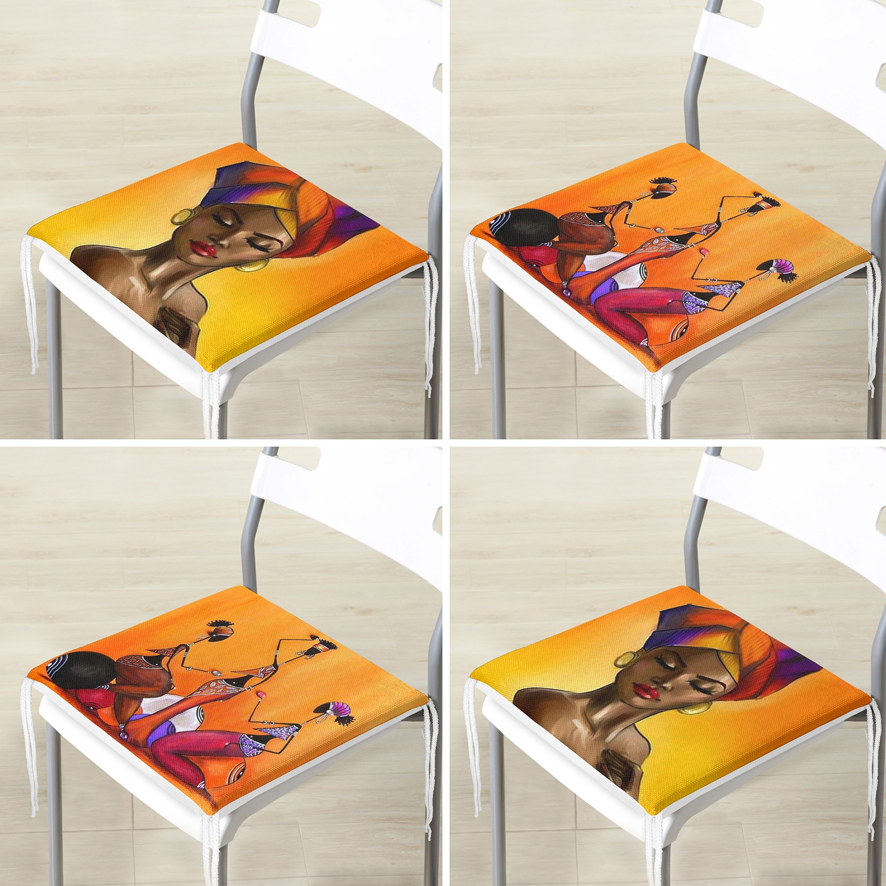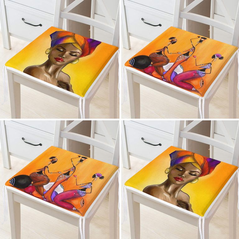 4’lü Afrika Bayan Motifli Fermuarlı Sandalye Minderi Seti