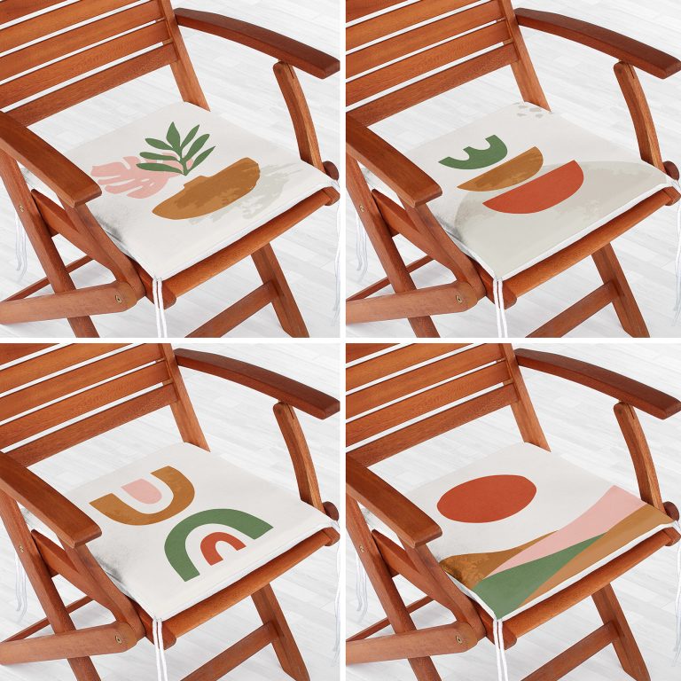 4’lü Beyaz Zemin Üzerinde Onedraw Çizimli Modern Fermuarlı Sandalye Minderi Seti