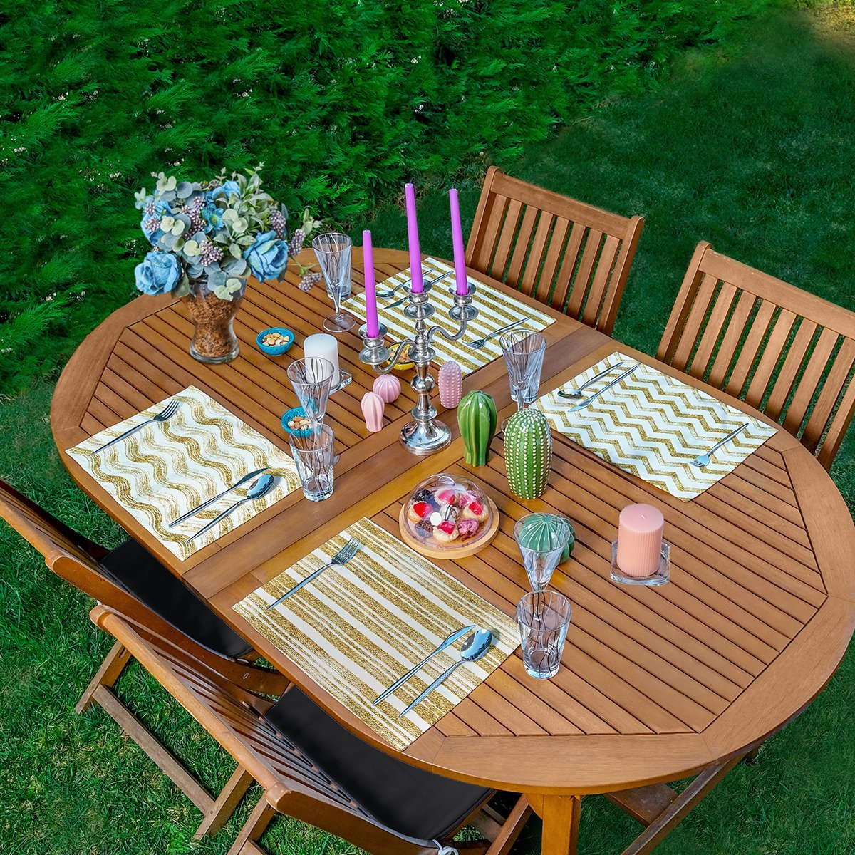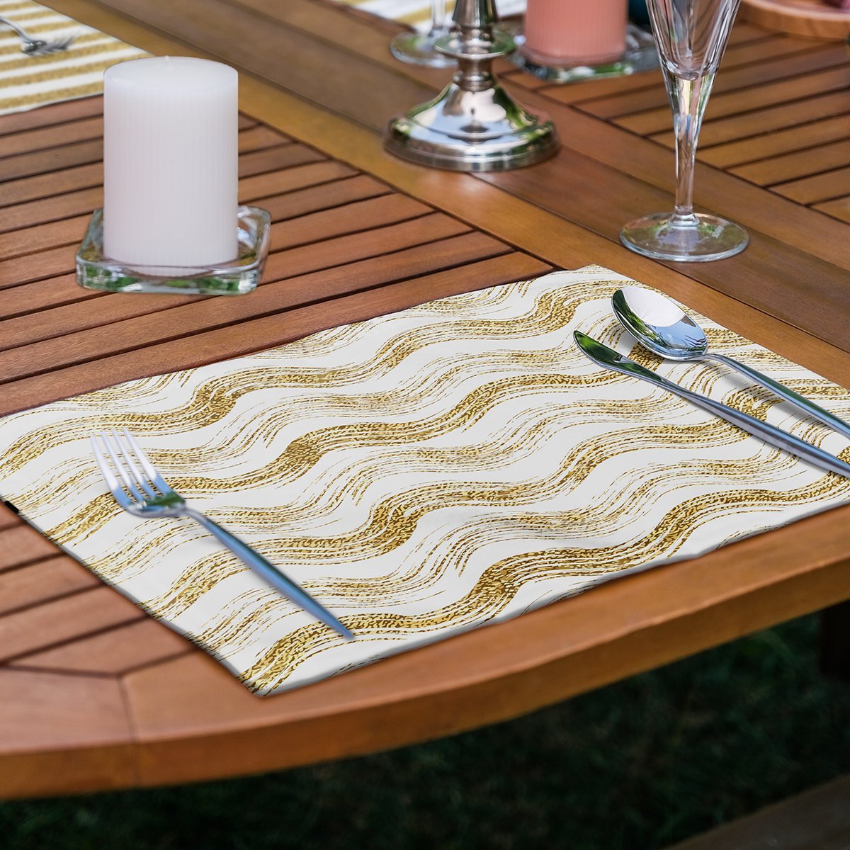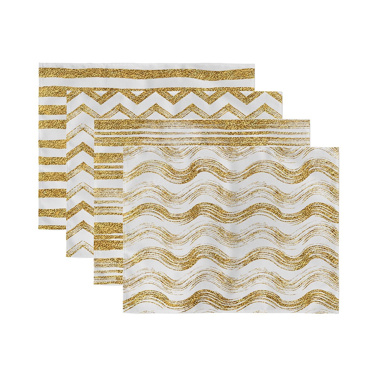 4’lü Beyaz Zeminli Gold Detaylı Geometrik Çizimli Amerikan Servis Seti