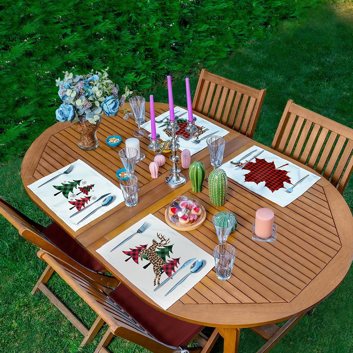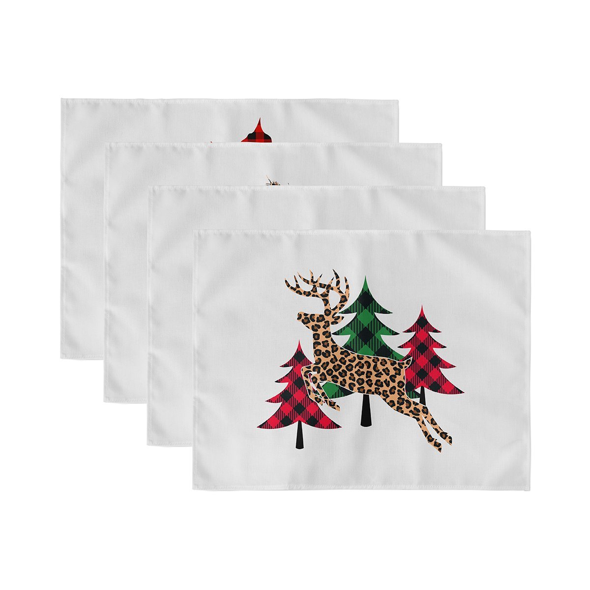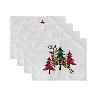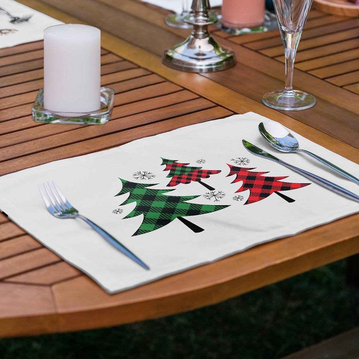 4’lü Çam Ağacı Tasarımlı Ekose Motifli Amerikan Servis Seti