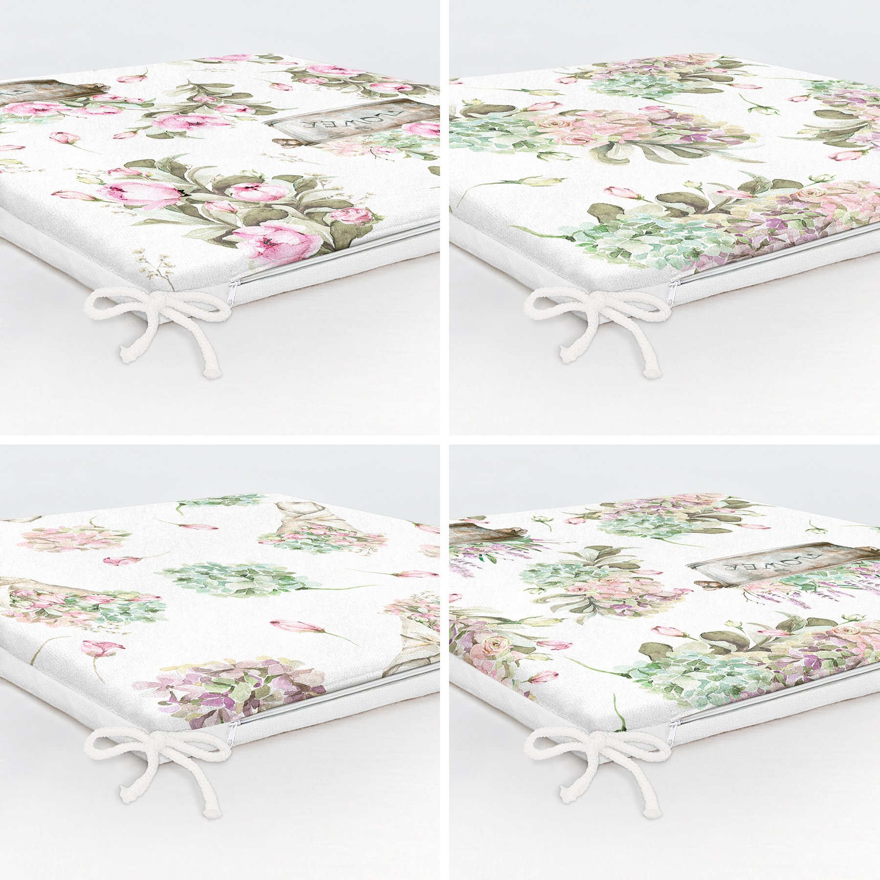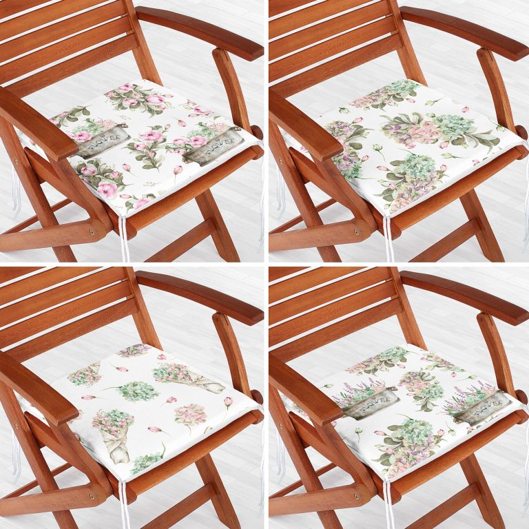 4’lü Çiçek Buketleri Tasarımlı Dijital Baskılı Modern Fermuarlı Sandalye Minderi Seti