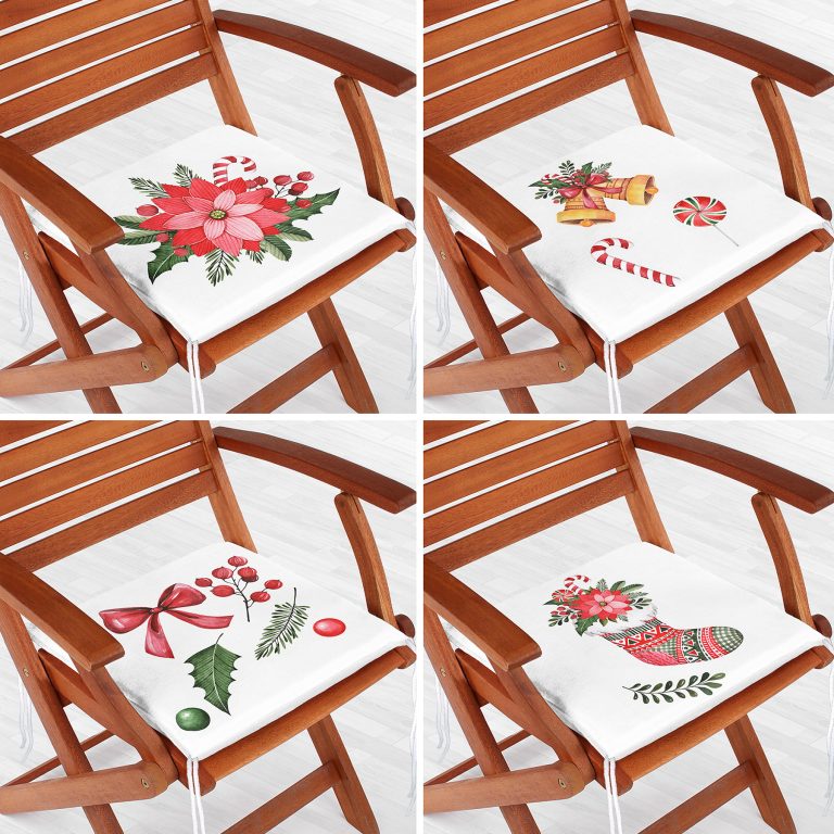 4’lü Çiçek & Şeker Tasarımlı Dijital Baskılı Modern Fermuarlı Sandalye Minderi Seti