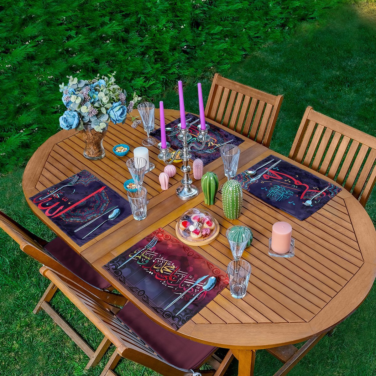 4’lü Dini Motifli Dijital Baskılı Amerikan Servis Seti