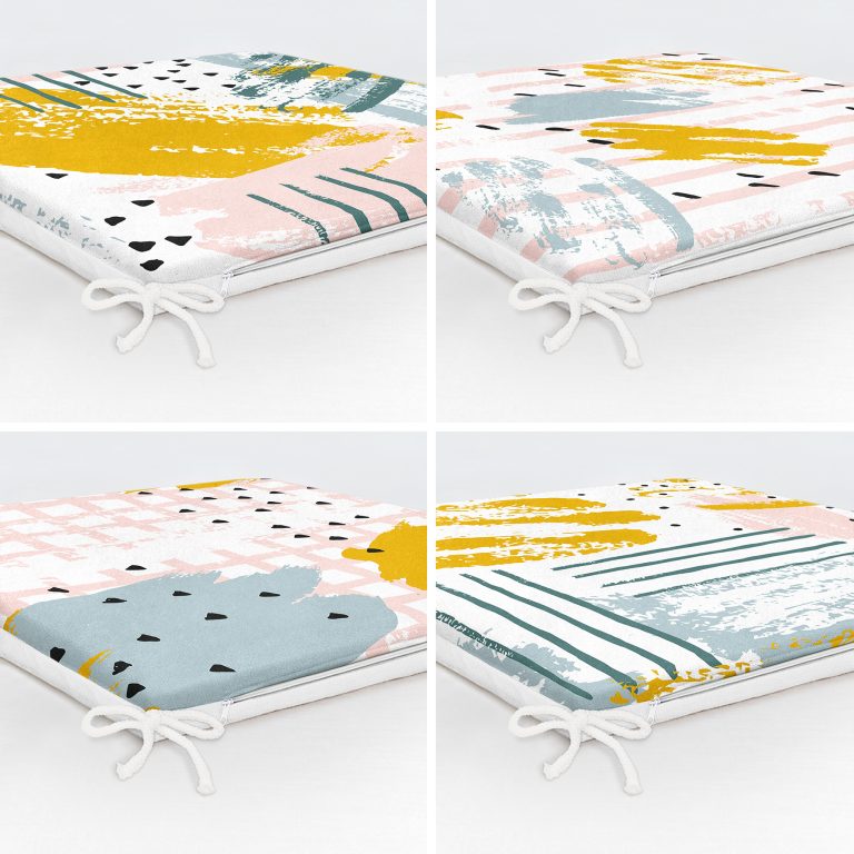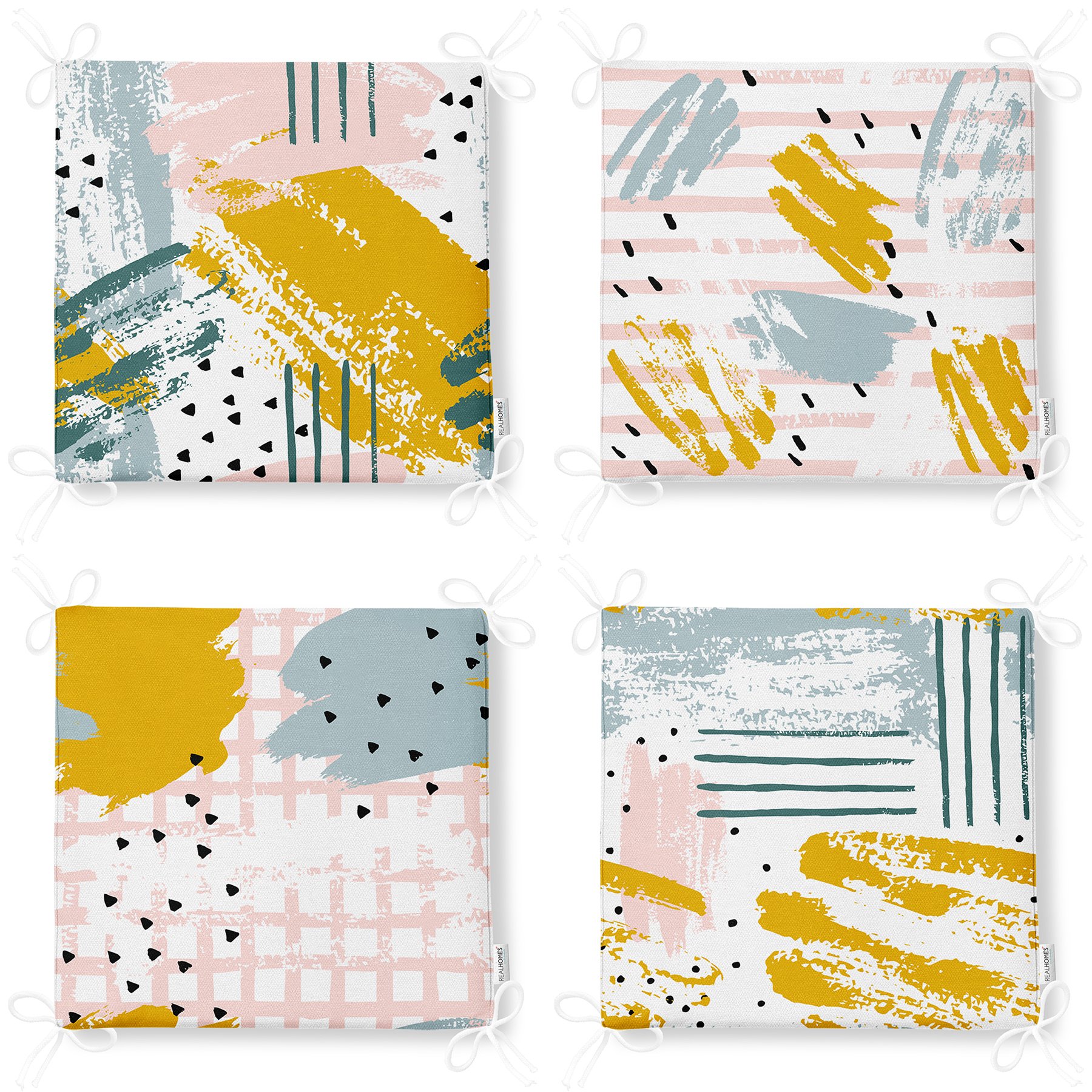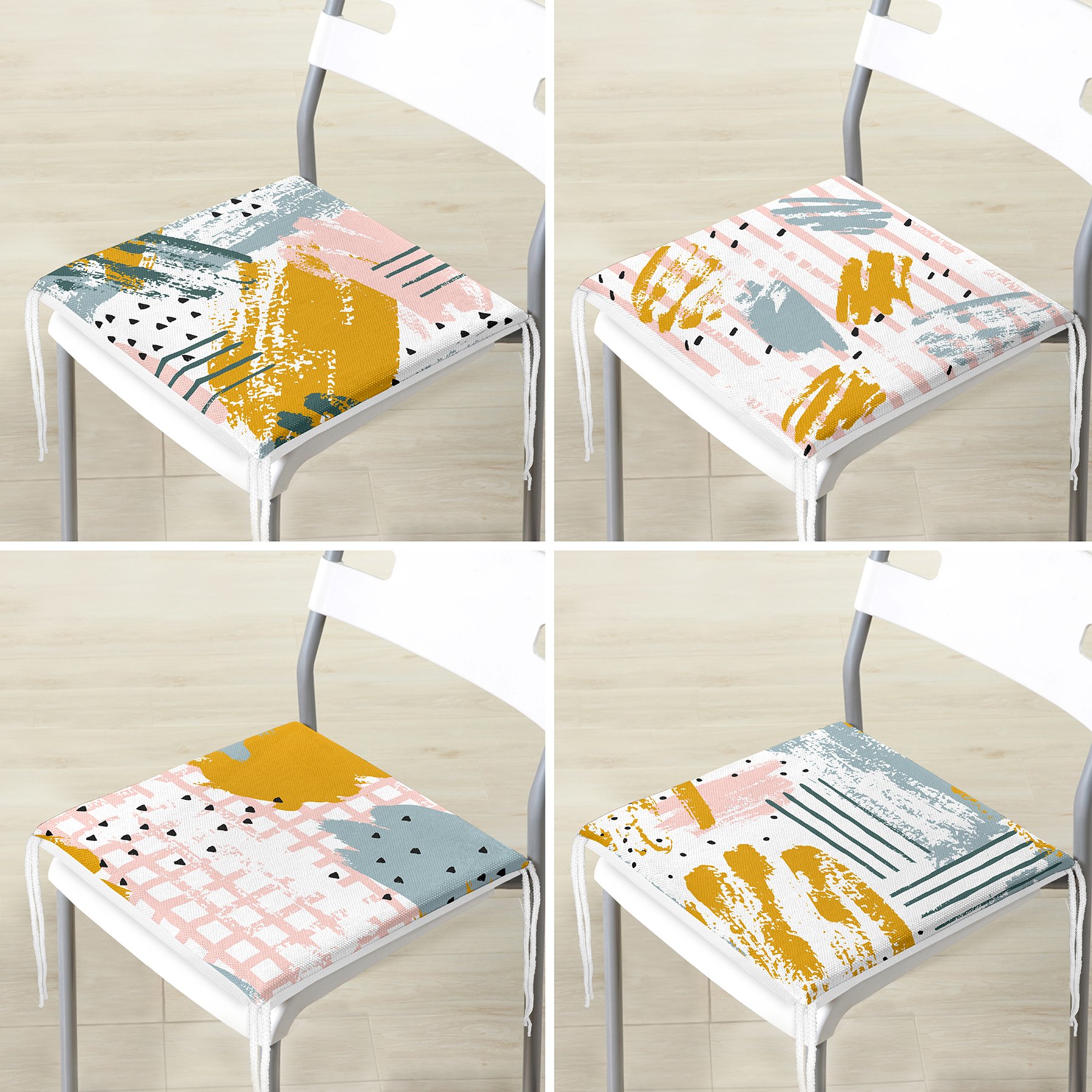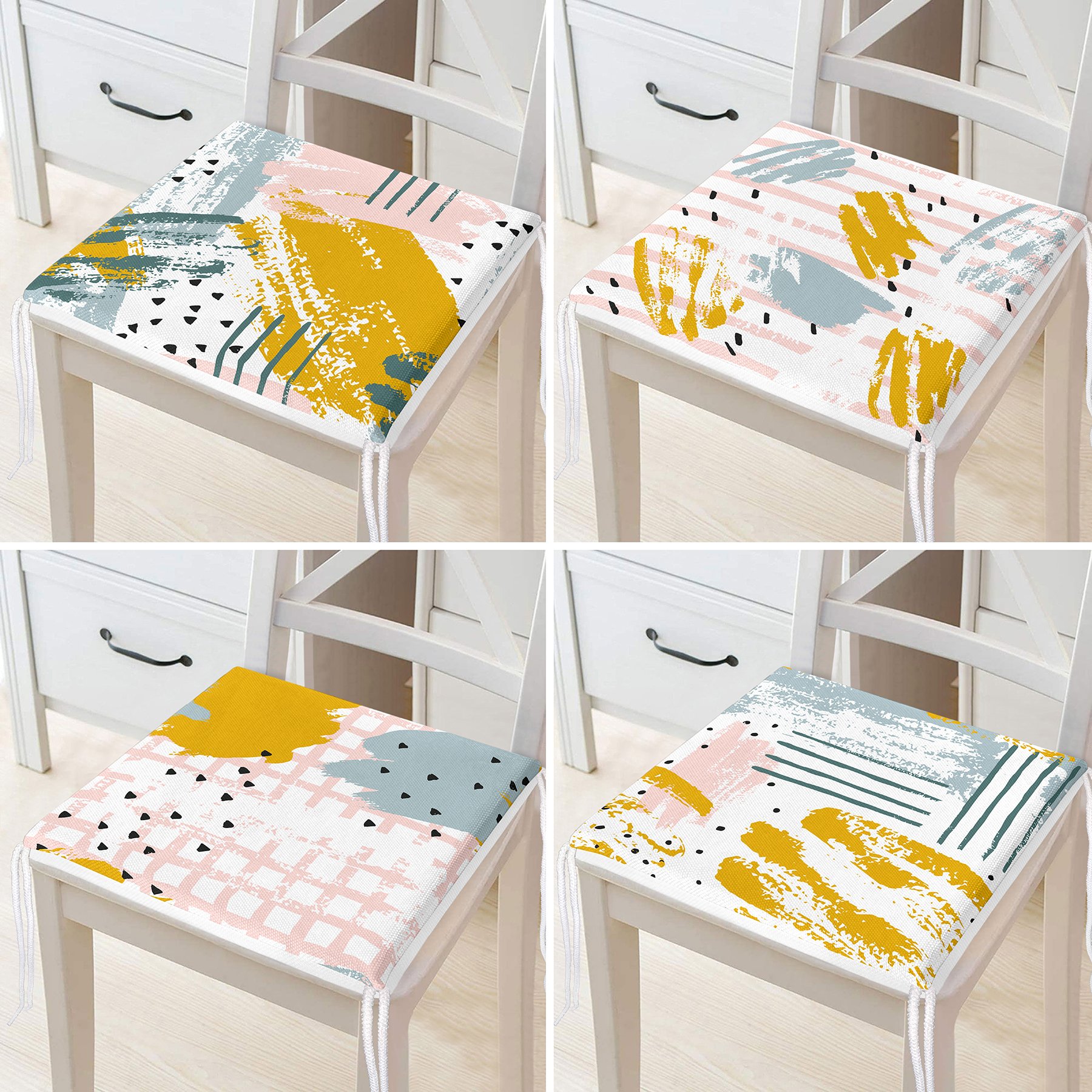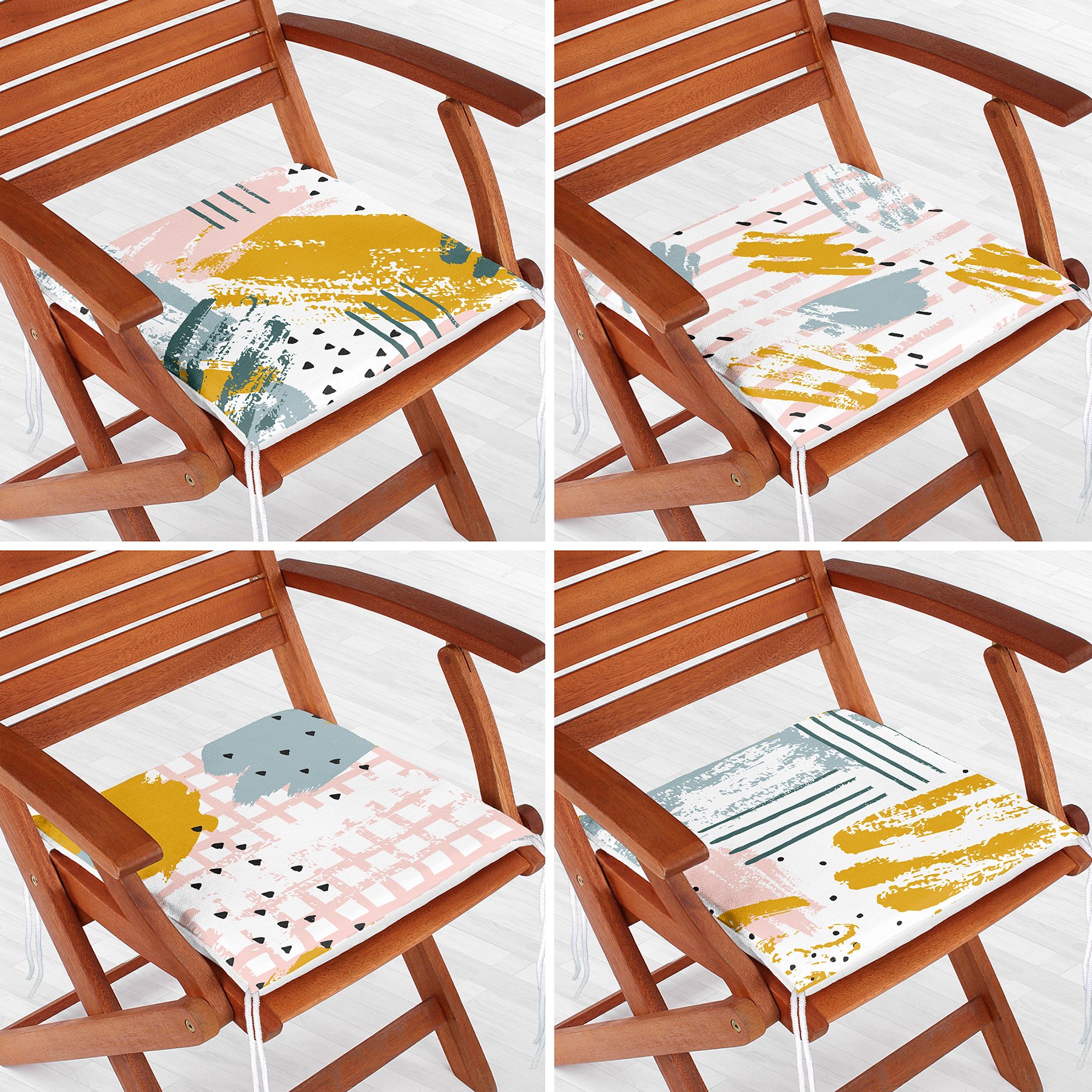 4’lü Düz Ve Yatay Çizgiler Üzerinde Sulu Boya Tasarımlı Modern Fermuarlı Sandalye Minderi Seti