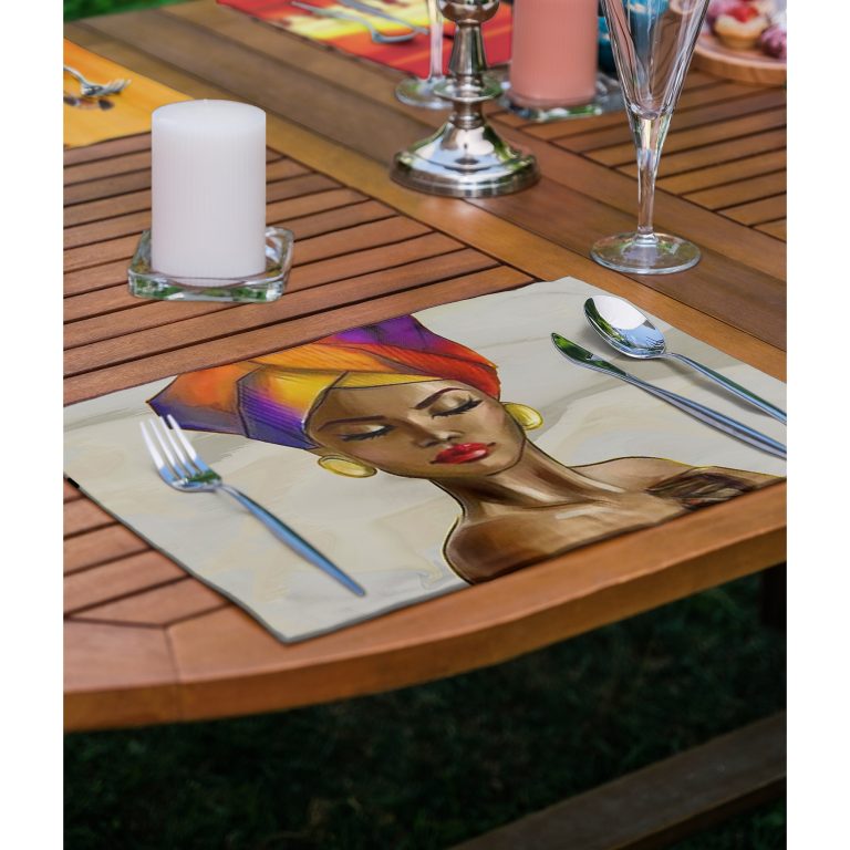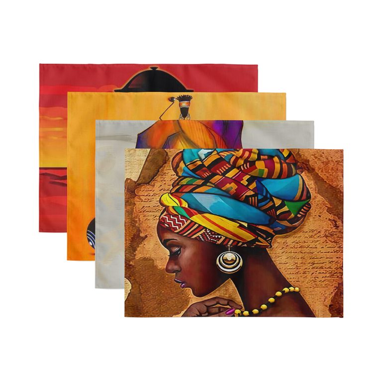 4’lü Etnik Afrika Kadınlar Özel Tasarımlı Dijital Baskılı Sunumluk – Sunum Altlığı – Amerikan Servis Seti