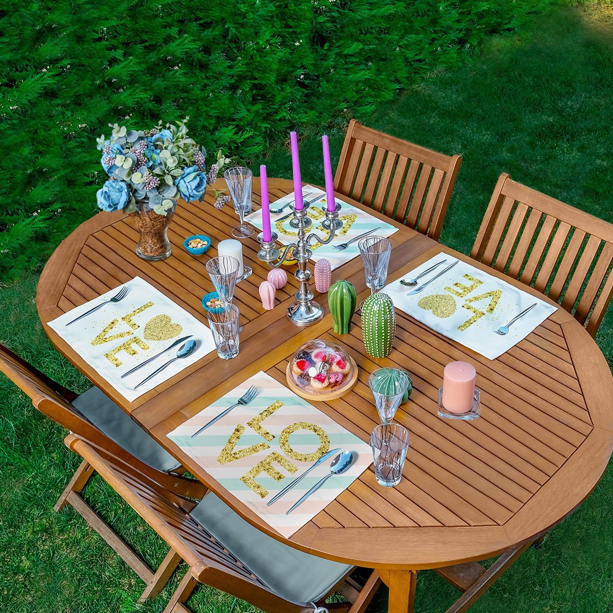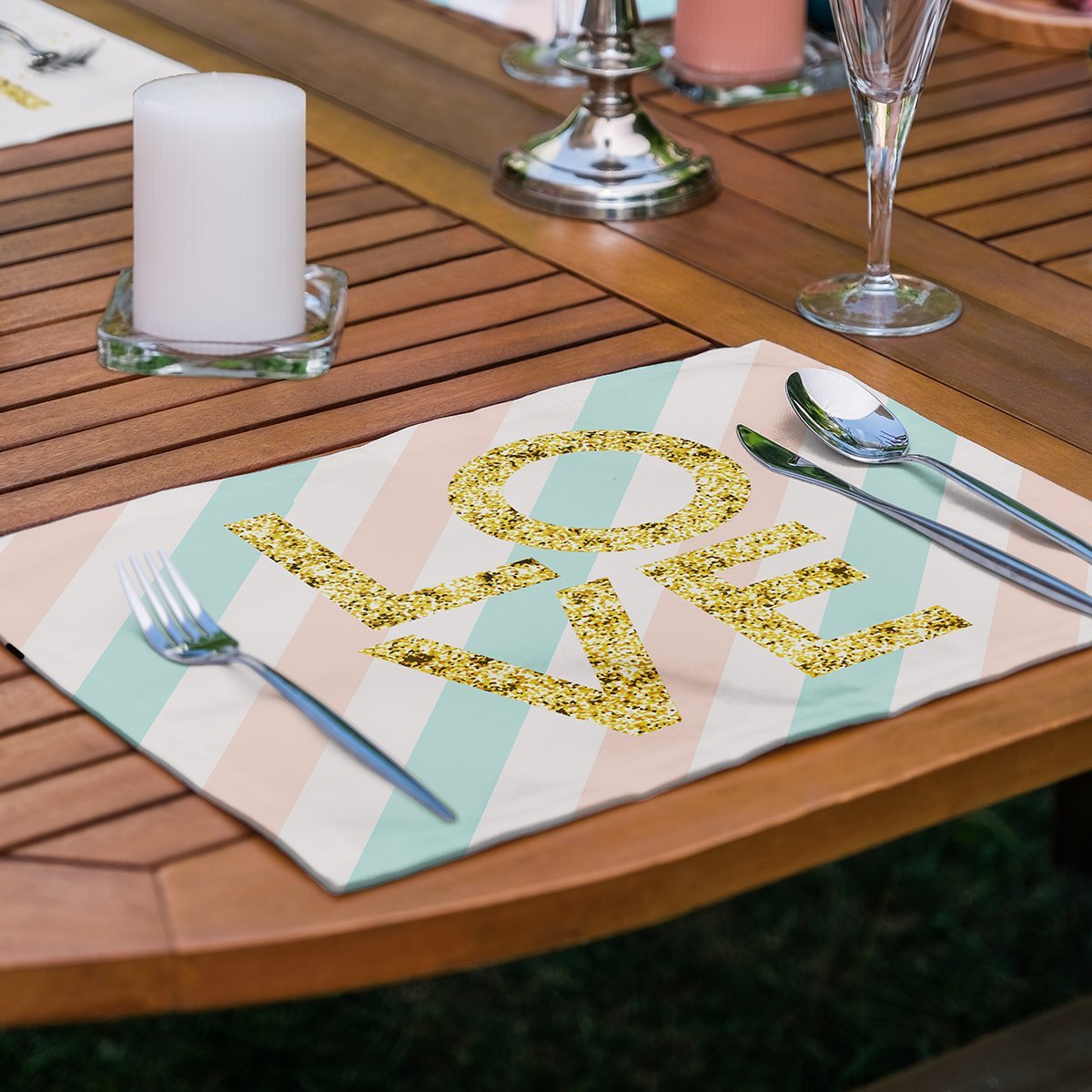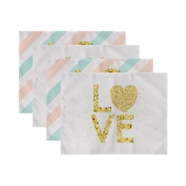 4’lü Gold Yazılı Love Tasarımlı Amerikan Servis Seti