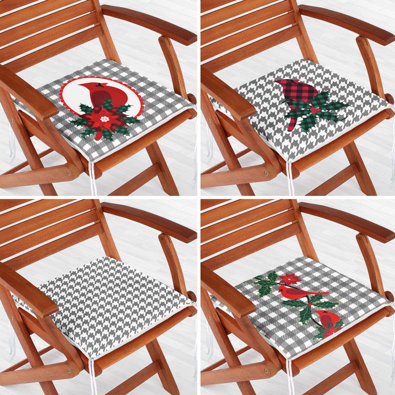 4’lü Gri Ekose Zeminli Kuş Tasarımlı Dijital Baskılı Modern Fermuarlı Sandalye Minderi Seti