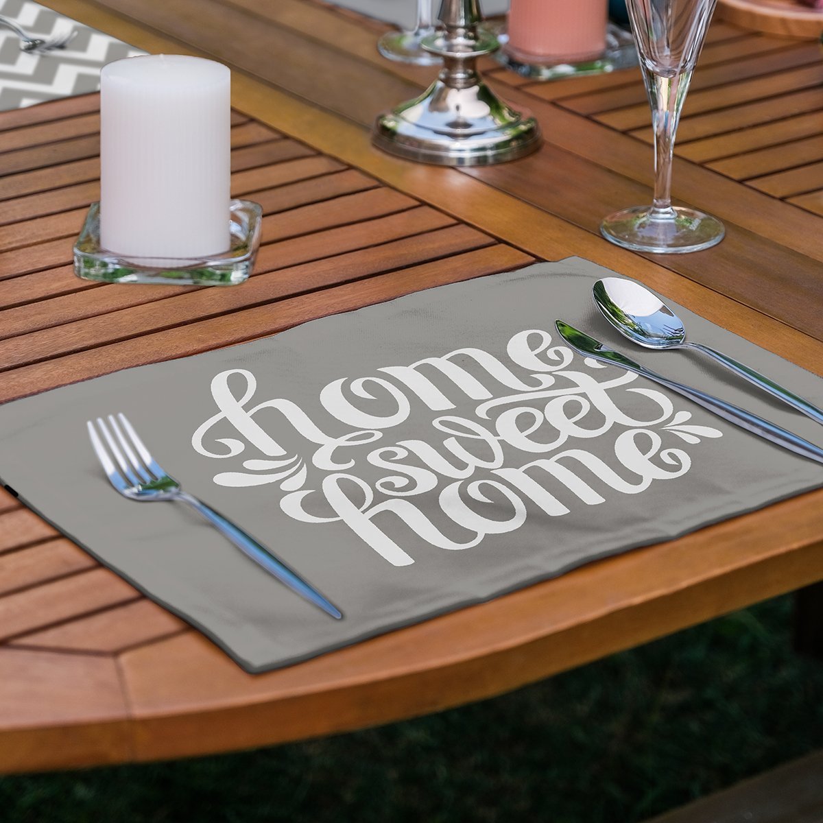 4’lü Gri Home Sweet Temalı Amerikan Servis Seti