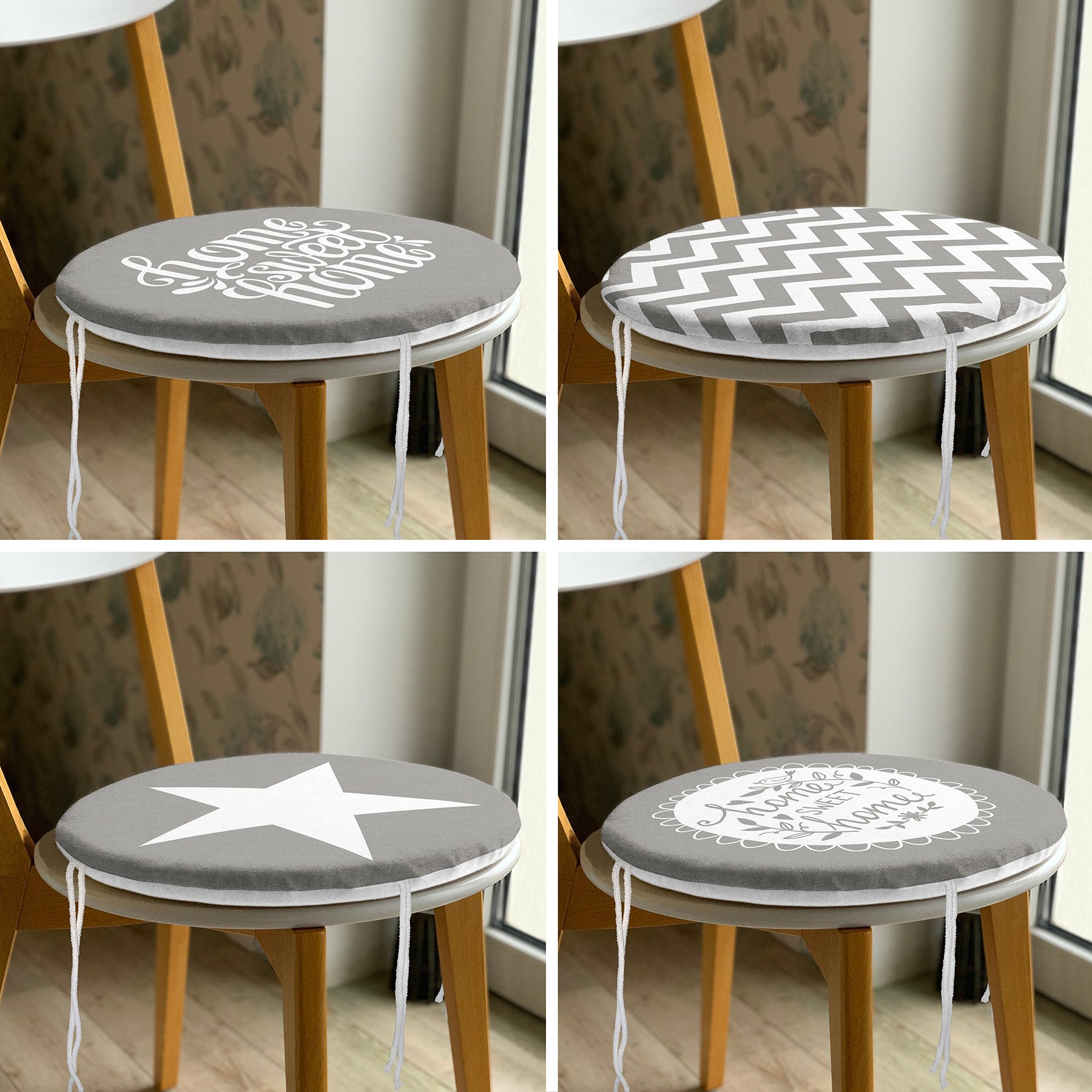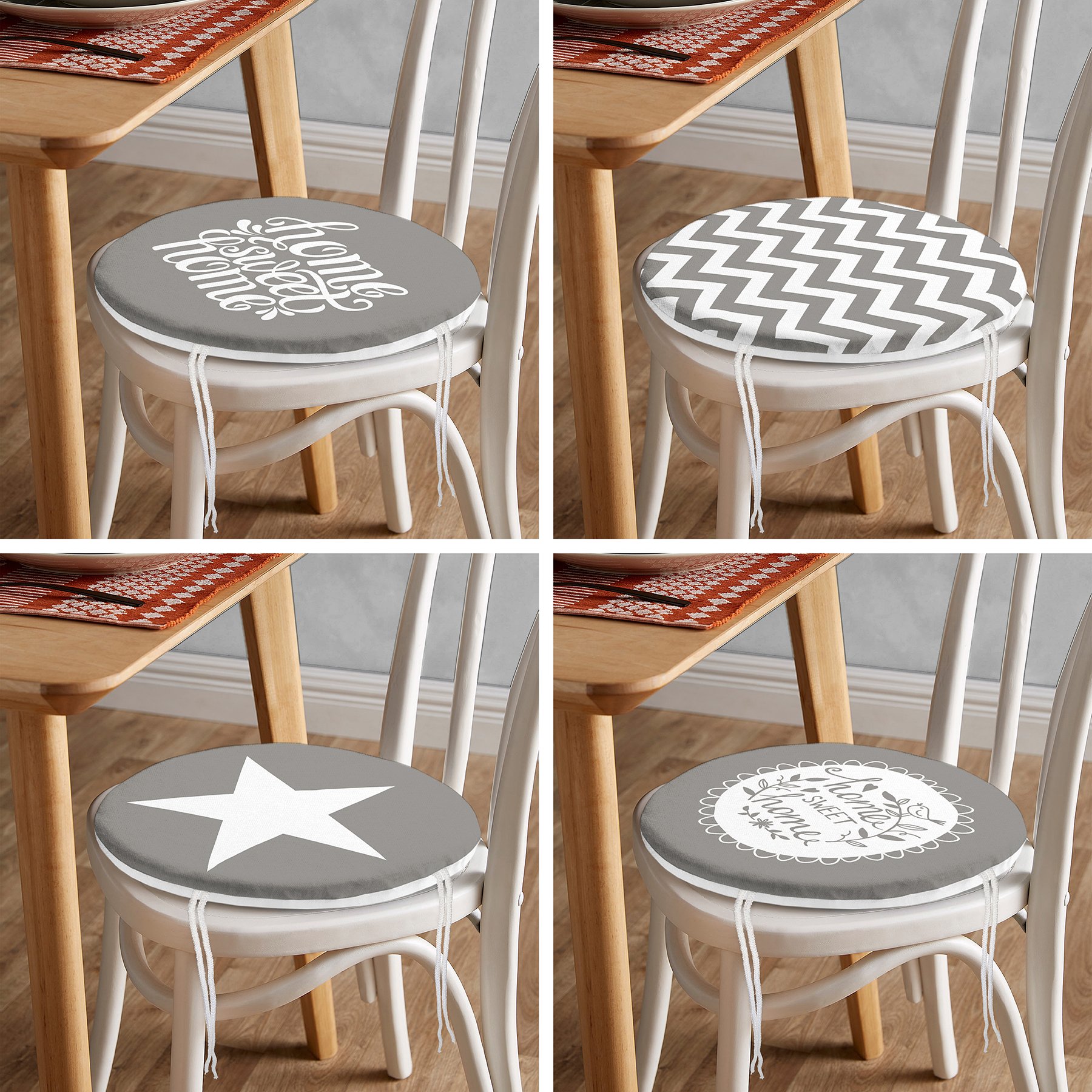 4’lü Gri Motifli Home Sweet Temalı Yuvarlak Fermuarlı Sandalye Minderi Seti