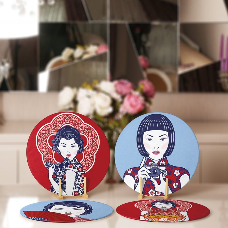 4’lü Kırmızı & Mavi Etnik Kadın Tasarımlı Servis Altlığı & Supla