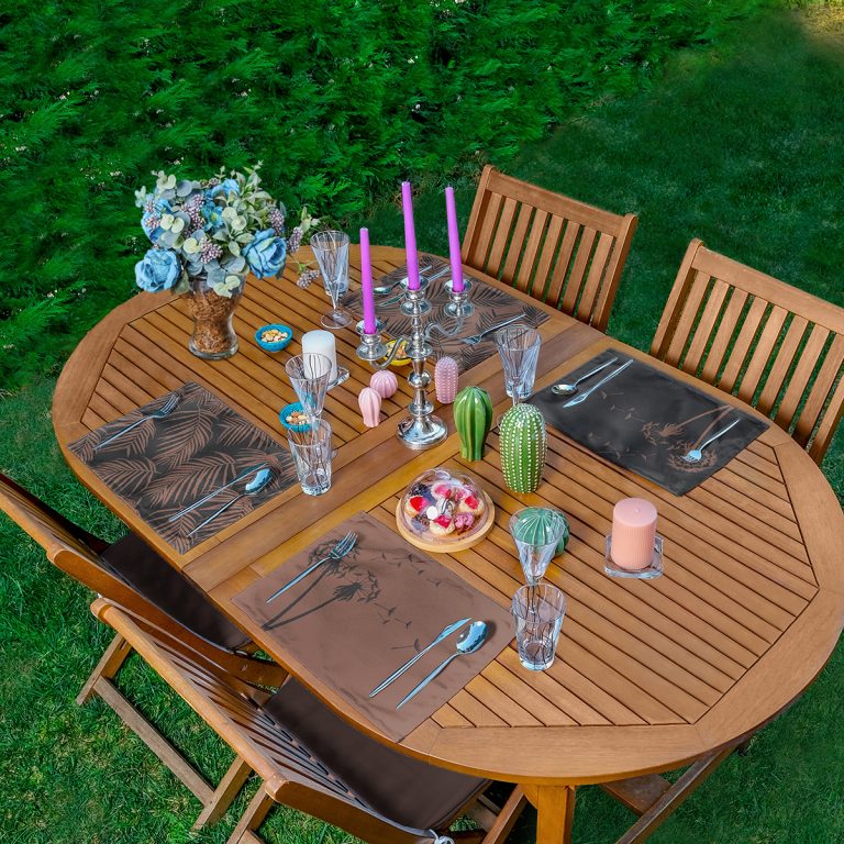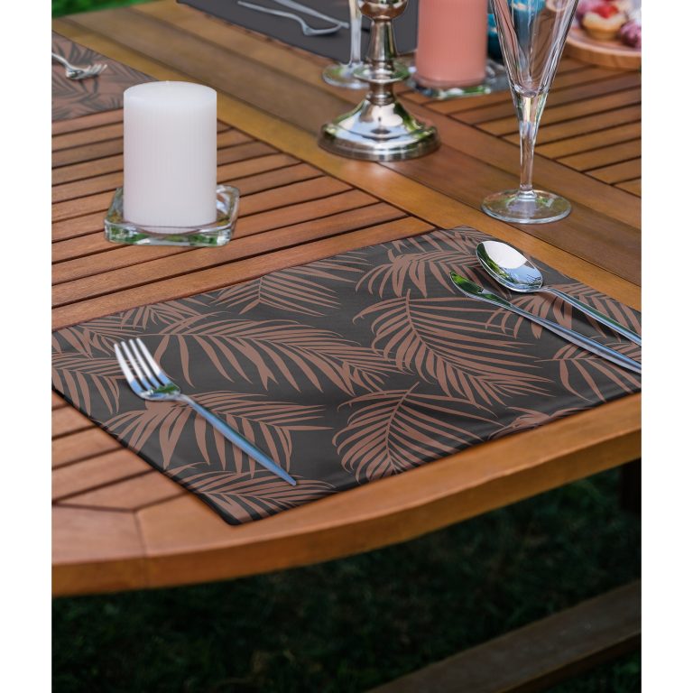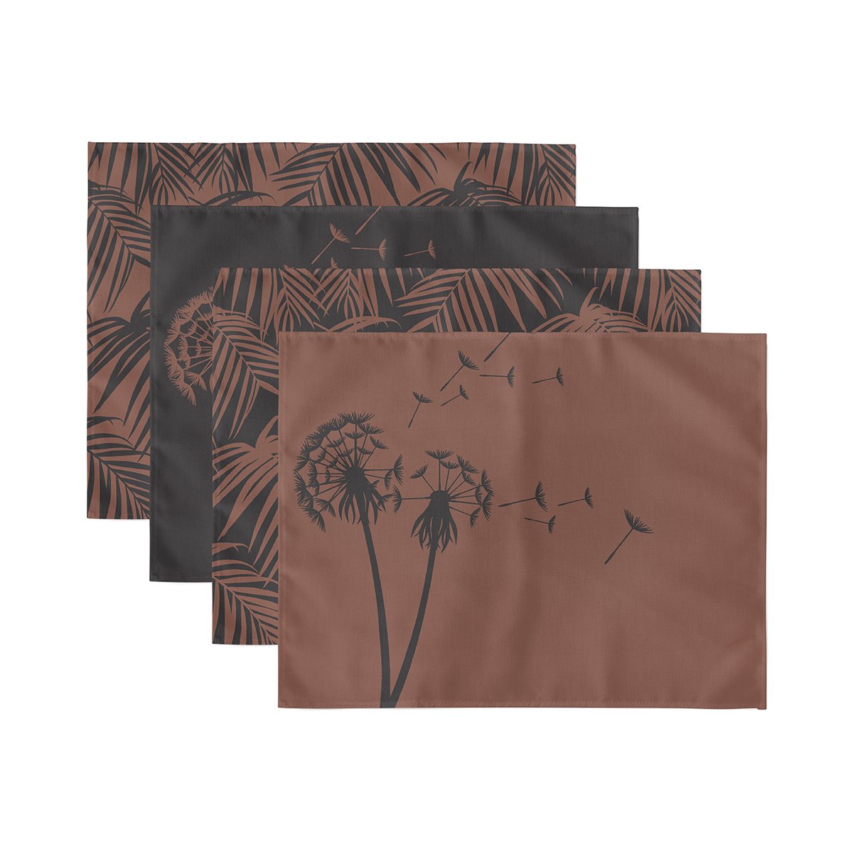 4’lü Koyu Temalı Tropik Yaprak Karahindiba Tasarımlı Sunumluk – Sunum Altlığı – Amerikan Servis Seti