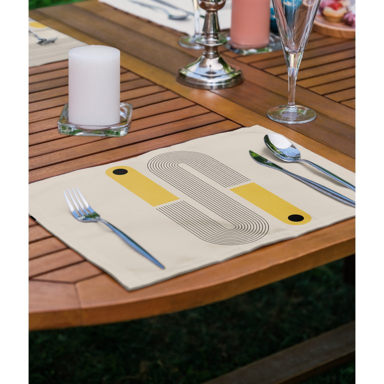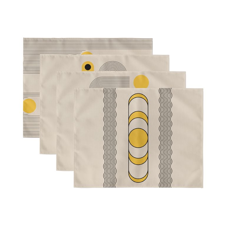 4’lü Krem Zeminli Çizgili Özel Tasarımlı Dijital Baskılı Sunumluk – Sunum Altlığı – Amerikan Servis Seti