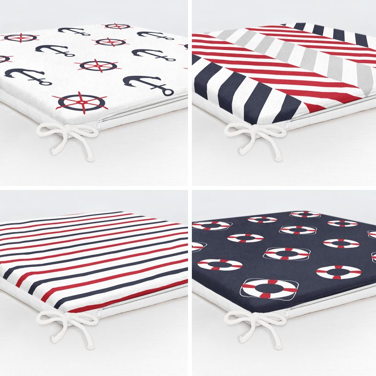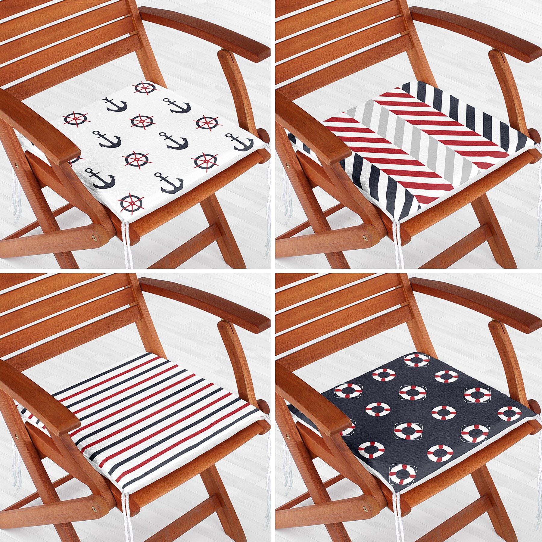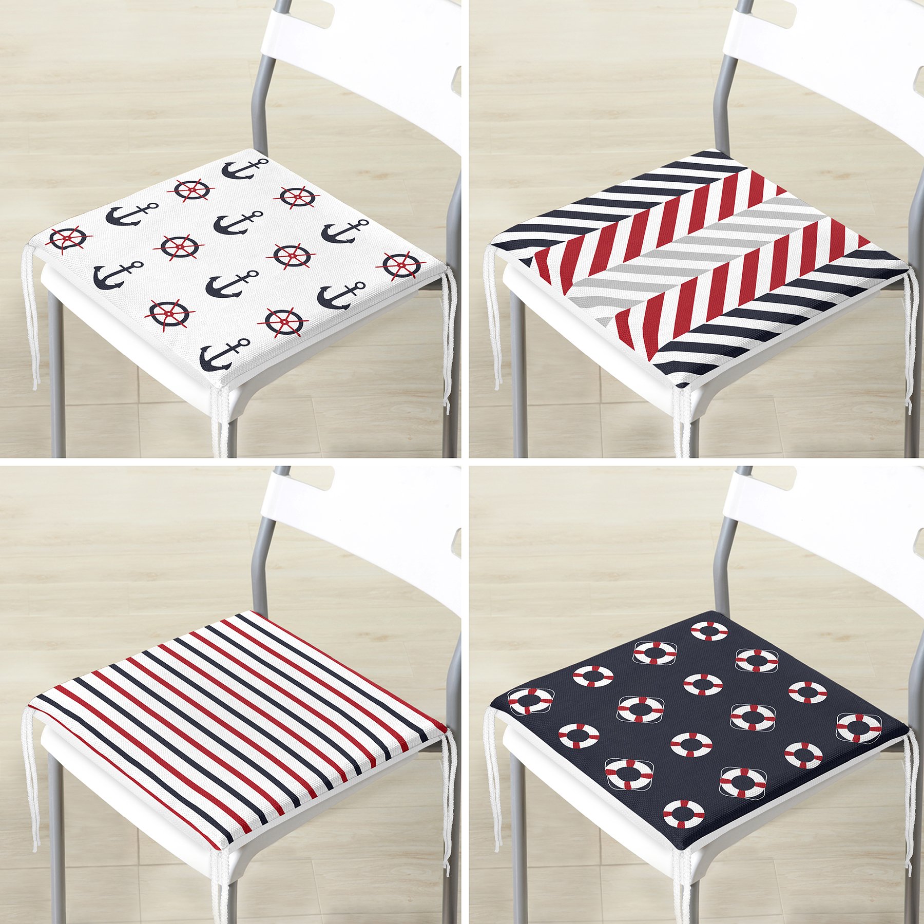 4’lü Lacivert Çapalı Çizgiler Motifli Modern Fermuarlı Sandalye Minderi Seti