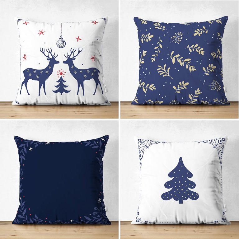 4’lü Lacivert Yılbaşı Temalı Dijital Baskılı Modern Süet Kırlent Kılıfı Seti
