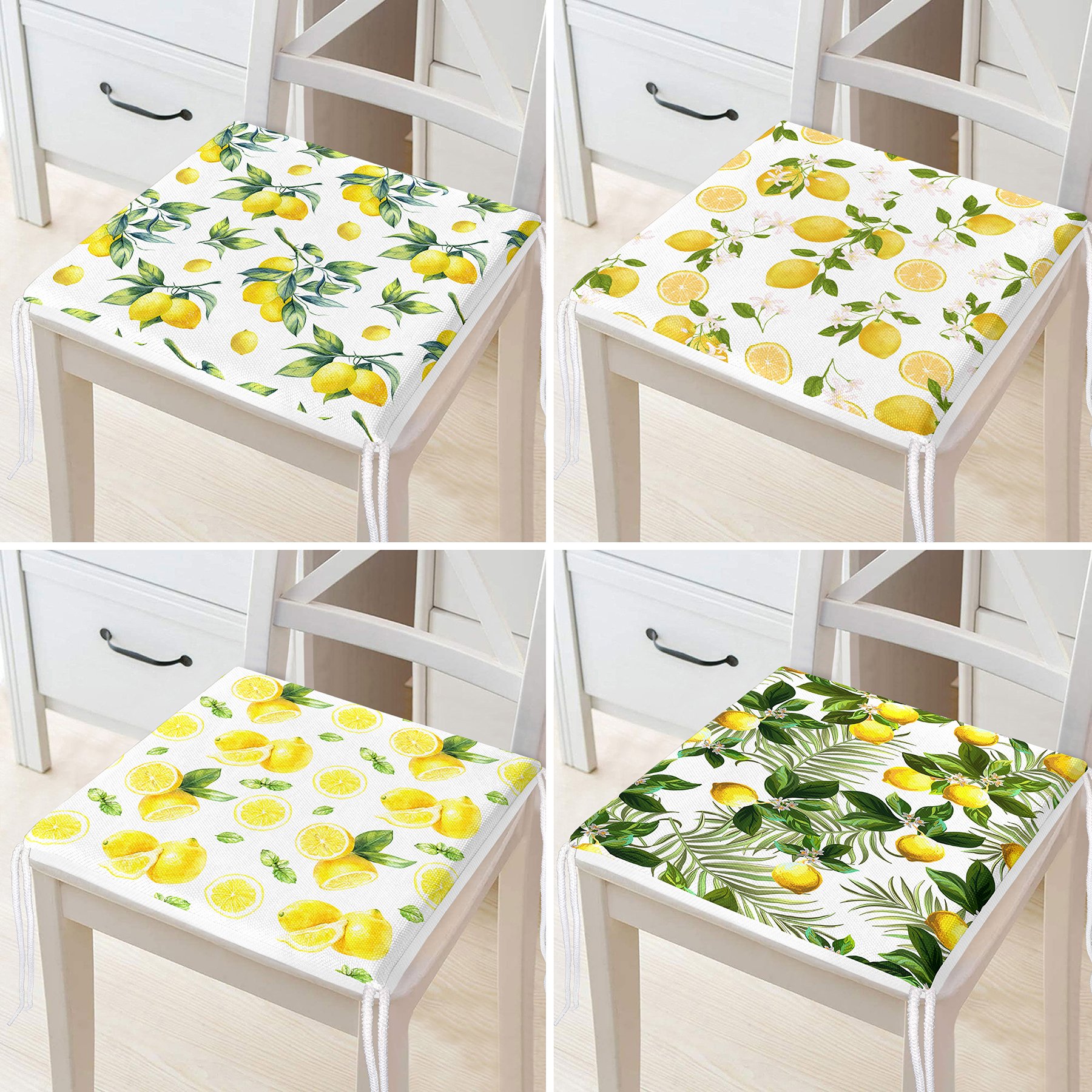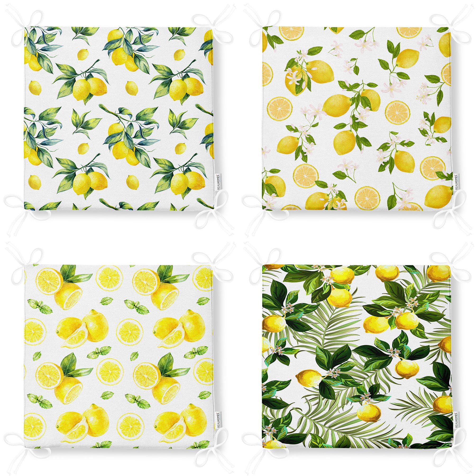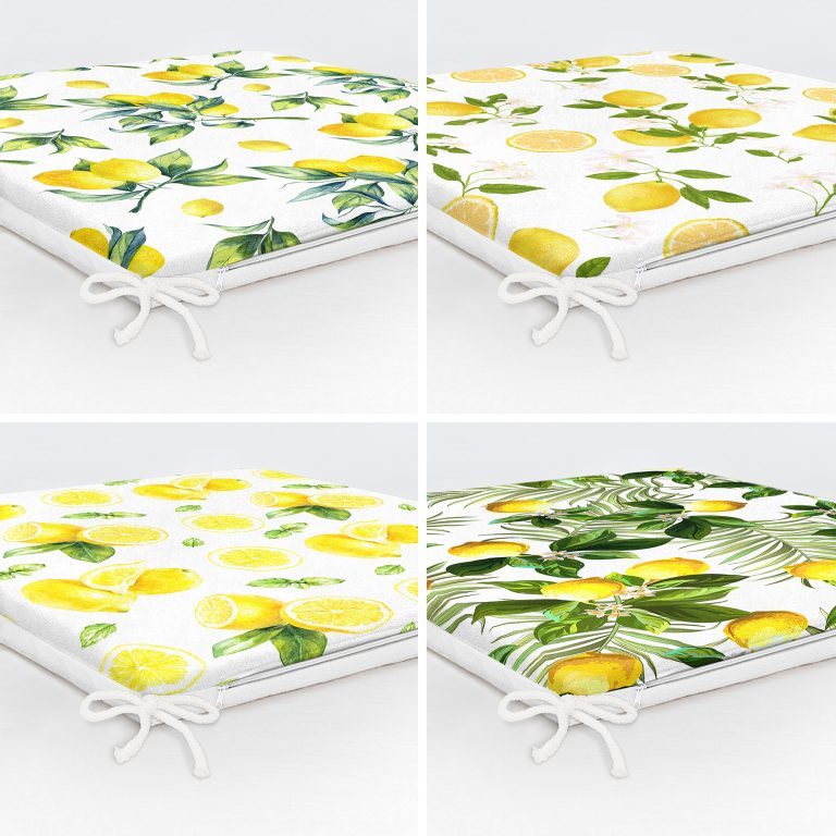4’lü Limon Temalı Özel Tasarım Fermuarlı Sandalye Minderi Seti