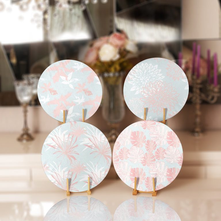 4’lü Mavi Zemin Yaprak Motifli Servis Altlığı & Supla
