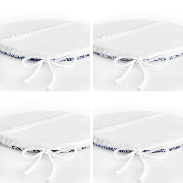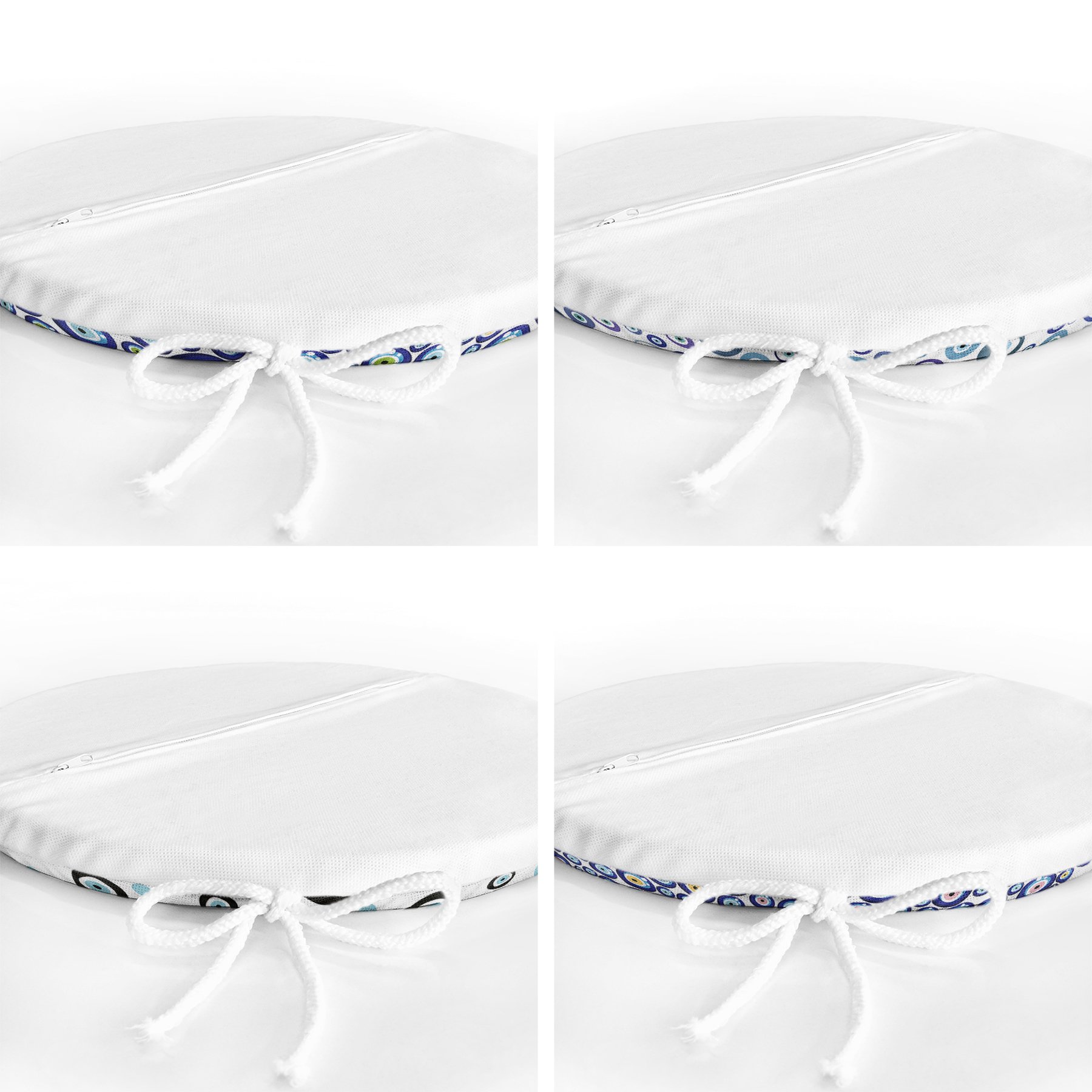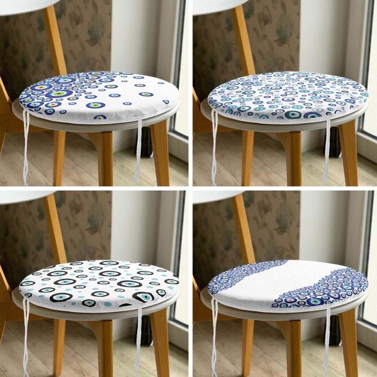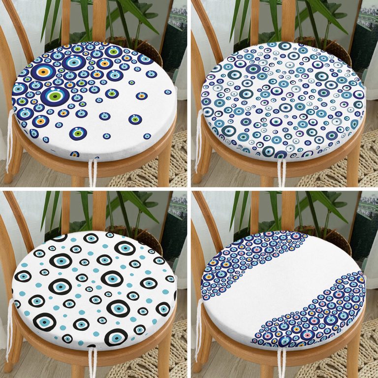 4’lü Nazar Boncuk Desenli Yuvarlak Fermuarlı Sandalye Minderi Seti