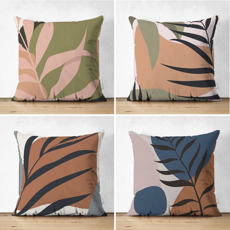 4’lü Özel Tasarım İnce Dal Yaprakları Dijital Baskılı Modern Süet Kırlent Kılıfı Seti