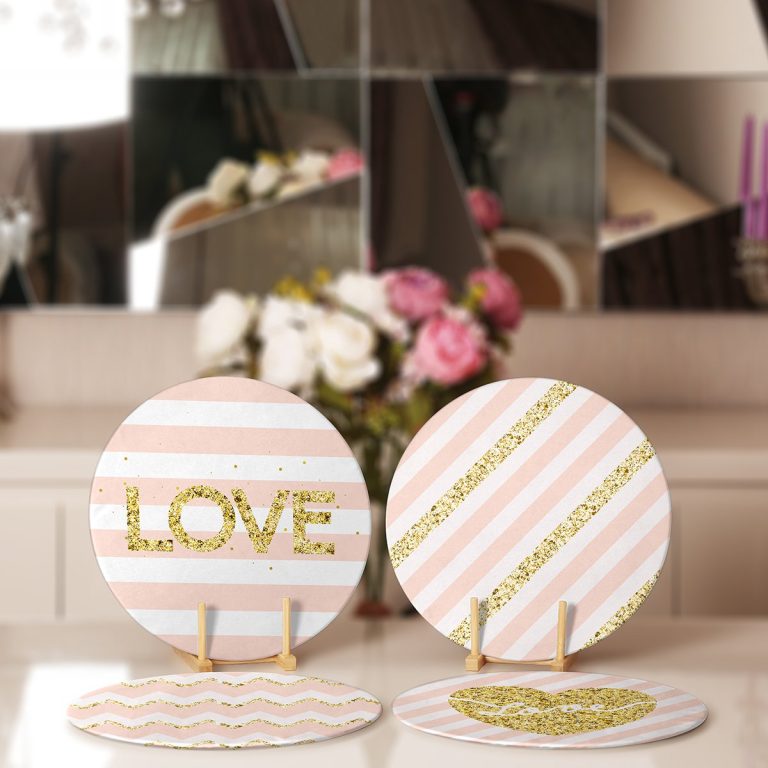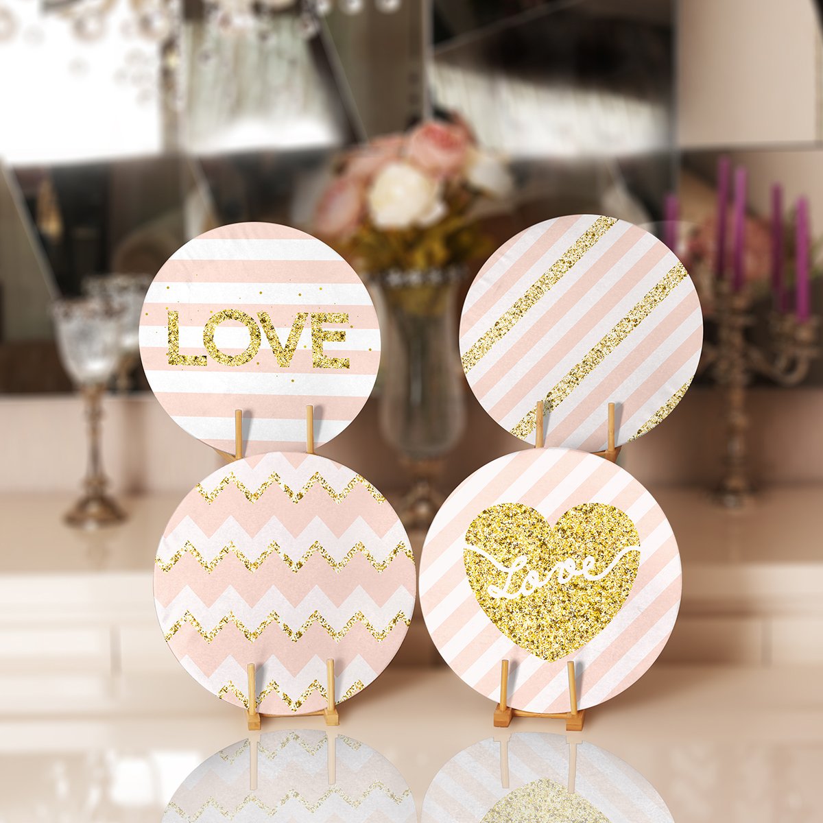 4’lü Pembe Çizgili Gold Detay Yazılı Servis Altlığı & Supla